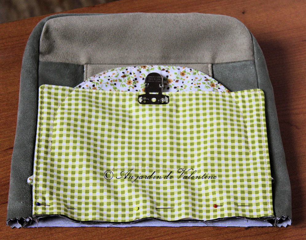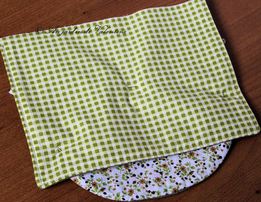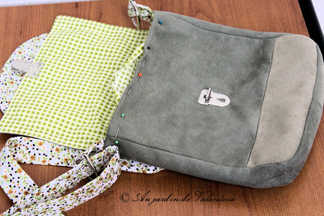 - Assembler les différents morceaux de la doublure - Poser l'autre partie du fermoir sur le devant du sac - Coudre la doublure au sac par sa partie supérieure et laisser une ouverture pour pouvoir retourner l'ouvrage sur l'endroit